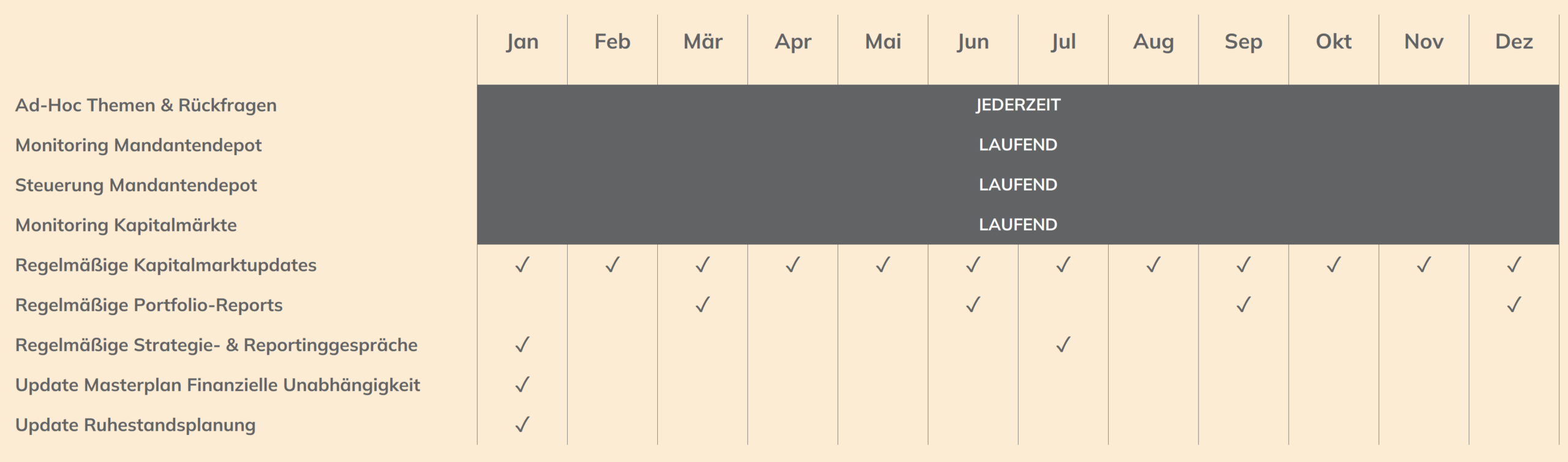 Laufende Betreuung: 0,52% – 0,82% des Depotvolumens p.a.